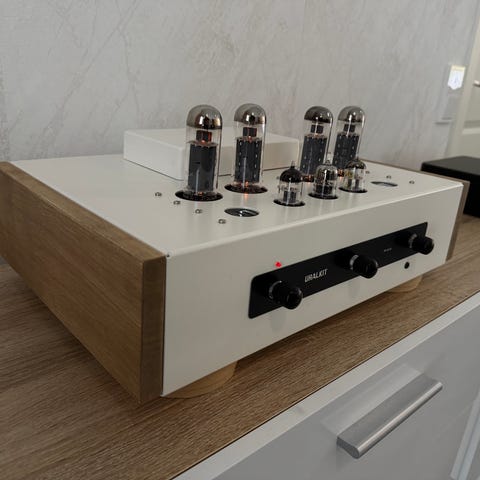 Uraltone Brachycera SE/84 rakennussarjasta tehty vahvistin.