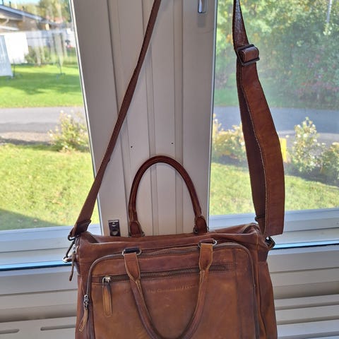 Katu-uskottava laukku, joka on ottanut vähän hittiä ja maalipinta on naarmuuntunut, mutta sehän vain sopii laukkuun.