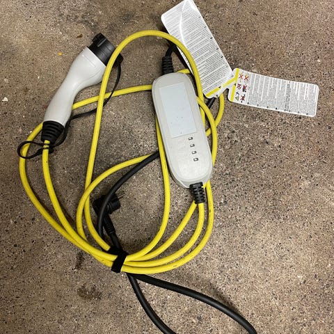 Type 1 - Type 2 EV-latausadapteri. Ollut käytössä Mitsubishi Outlander lataushybridin latauksessa, jotta pystyi käyttämään tavallista Type 2 latausjohtoa.