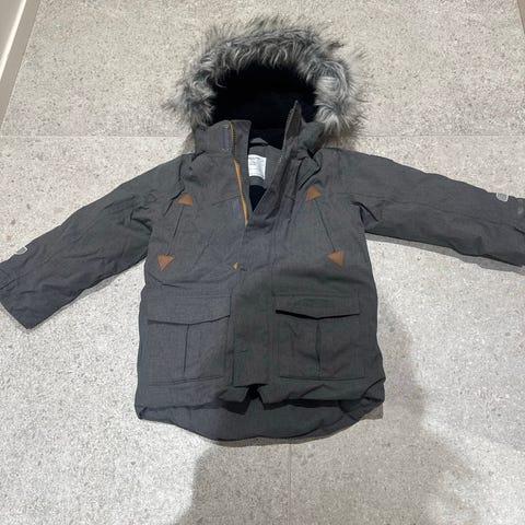 Popin takki (se ohuempi, vesipilariarvo 5000) koko 104. Siisti, ehjä mutta meille jo pieni.