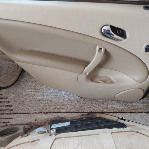 Saab 9-3 farmarin puolinahka istuimet. Kuskin penkki vaatii vähän kittailua ja takapenkin istuimessa joku tarha varmaan lähtee tekstiilipesurilla. Muuten penkit aika hyvän kuntoiset. Takapenkin selkänojaa ei ole. Nahkainen kyynärnoja ja nahkaiset takapenkin selkänojan ympärillä olevat osat löytyy. Myös nahkaiset ovipahvit kuuluvat kauppaan niistä ei nyt kuvaa. Ovipahveja on vain kolme. Apukuskin takana istuvan ovipahvi puuttuu