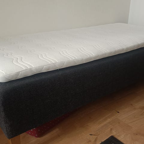 Annetaan vanha mutta siisti, 120 cm leveä runkopatja ja petauspatja. Ikä näkyy pienissä kulumissa (esim. rispaantunut kulma ja yhdestä kohtaa purkautunut ommel, ks. kuvat). Sänky on kuitenkin aivan käyttökunnossa ja onkin ollut käytössä tähän asti, luovun siitä nyt muuton ja isomman sängyn myötä.