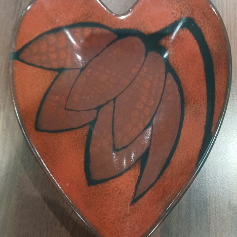 Pentikin tarjoiluastia tai koriste. Keraaminen, sininen ja keltainen hedelmäkuvio. Malja sopii koristekäyttöön tai tarjoiluun. Mitat kuvissa. Toridiili tai haku Joensuun keskustasta.
