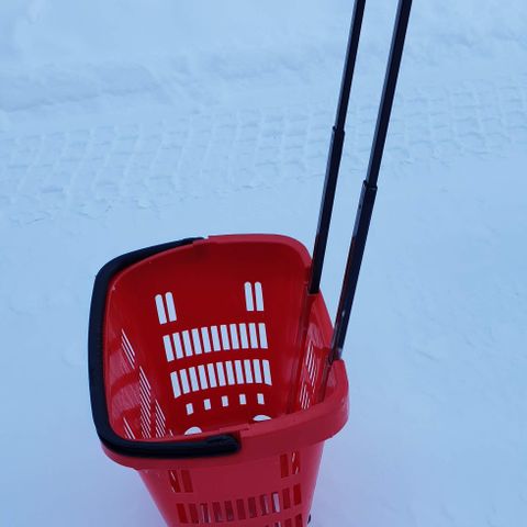 Migant ostoskärry jossa säädettävä vetoaisa ja helposti rullaavat isot pyörät. Irrotettava laukkuosa kolmella vetoketjutaskulla. Laukussa heijastava yksityiskohta, läpän alla nyörikiinnitys. Hinta 20€.