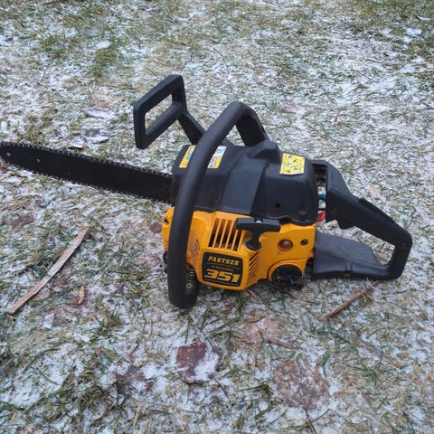 Partner 420 moottorisaha, muuten toimiva mutta teräketjuöljyä ei tuu.