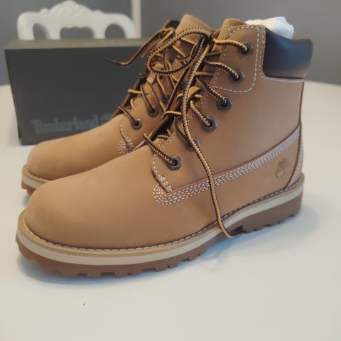 Timberland lasten nilkkurit koossa 33. Nilkkurit ovat ruskeaa nahkaa ja unisex-malliset. Vetoketju sivussa ja kumipohja.