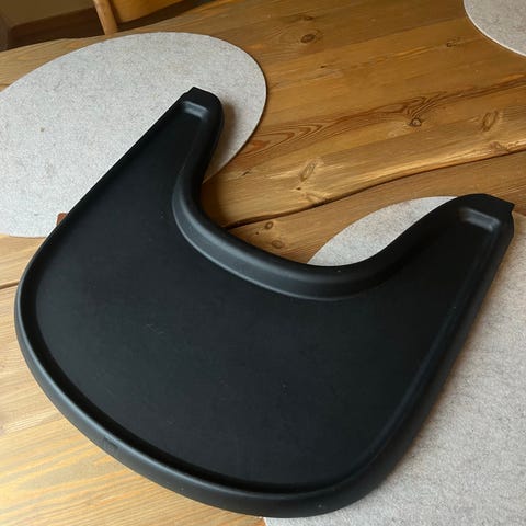 Stokke Tripp Trapp Baby Set tarjottimella, liukuesteillä ja istuinpehmusteilla
