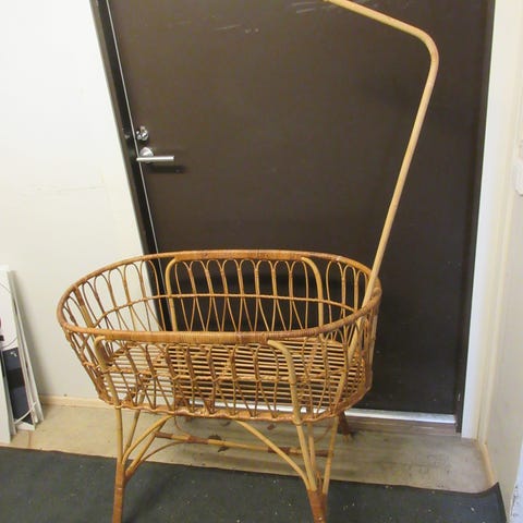 Vanha rottinkinen vauvan sänky, käytön jälkiä löytyy ja "tuohisidoksia" liimailtu (yksi sidos puutuu, ei vaikuta käyttöön). Oikein toimiva vauvan sängyksi, renkaat toimivat moitteettomasti. Mukaan patja ja reunapehmuste. Mitat ks kuva 2. Nouto Nummelasta, tai kulkeutuu pk-seudulle.