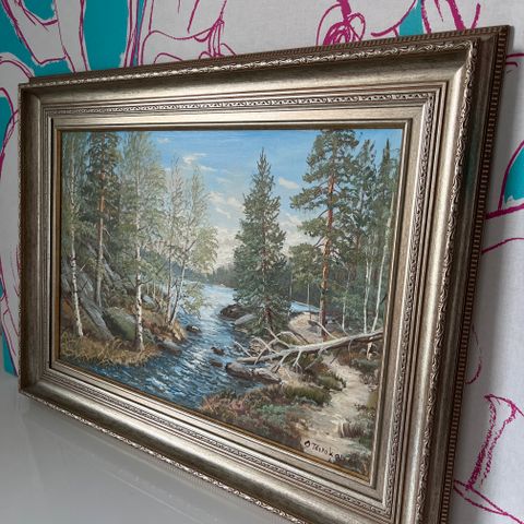 Hieno Helsingin keskuspuistoon liittyvä aihe. E. Tanskanen. Koko noin 30 x 40 cm.