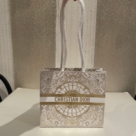 Dior pakettinauhaa ja punainen lahjakassi