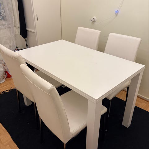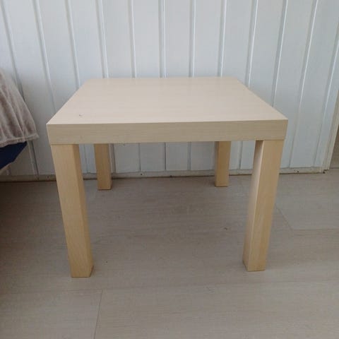 Annetaan pöytä, jolla pirteän punaiset jalat ja lämpimän kellertävä kansi. Nouto arkisin 8.30-18 Kauhatieltä.