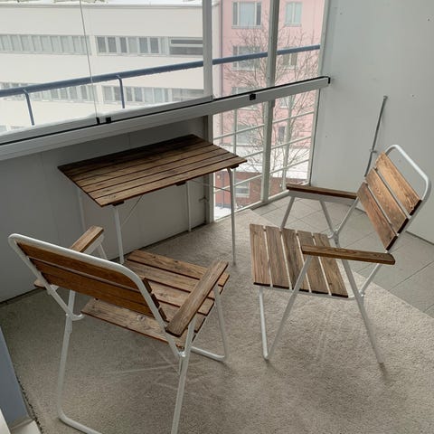 Parveke pöytä ja 2 tuolia