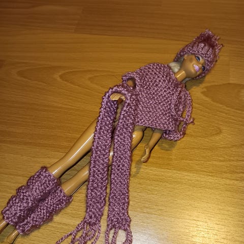 Sisältää pipon, säärystimet, hiuspannan ja kaulahuivin.