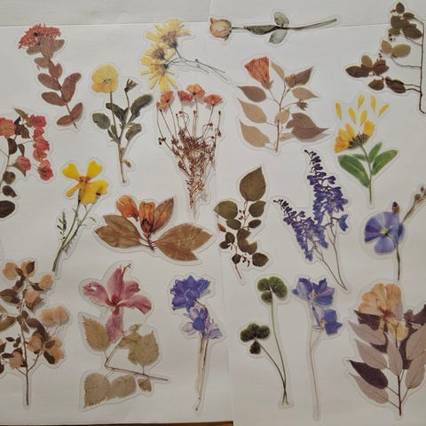Kasvi / kukka tarrasetti nro 1. Aiheena syys / syksy / syksyn kasvit ja kukat