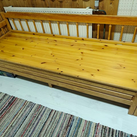 Annetaan vuodesohva, levittyy kuvan mukaisesti. Siisti kunto. Nouto Itkonniemi, 1. kerros.