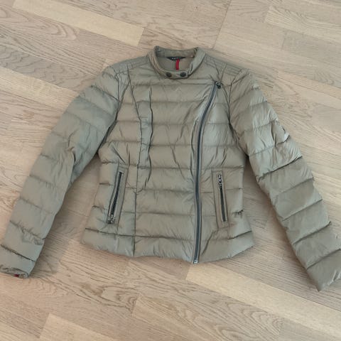 Klassinen lyhyt untuvatakki, koko 34. Siistissä kunnossa. Pituus 57cm ja kai kai mitta noin 46cm. Vetoketju ja nepparit