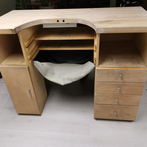 Suuri työpöytä 1800 x 3255mm kansi 70mm vahvaa kertopuuta jäykkärit alapuolella ja välitason kork 920mm. Kuvaa saadaan myöhemmin...