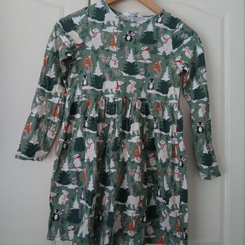Heppamekko kokomerkintä 134. Siistikuntoinen, melko vähän pidetty. Parissa kohtaa huomasin jälkeä syynätessä, en tiedä onko ollut "värivirheenä" kankaassa alunperinkin. Tämä jonkun itseompelema, siististi tehty laadukkaasta kankaasta. Pyykkipojista vähän painaumaa, lähtenee seuraavassa pesussa.
