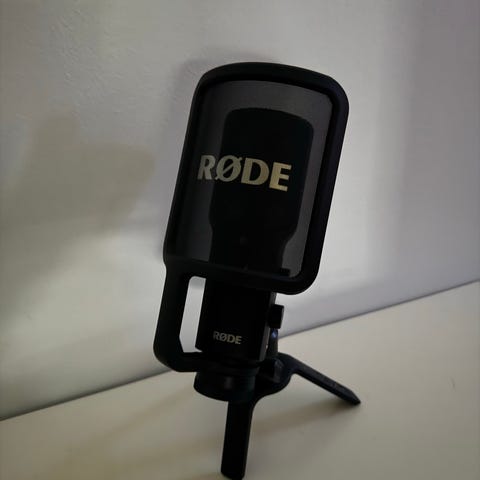 Laadukas mikrofoni, ollut pelikäytössä muutamia kertoja, mutta jäänyt tarpeettomaksi. Mikki on merkiltään Røde nt-usb+ ja jalka on røde psa1.