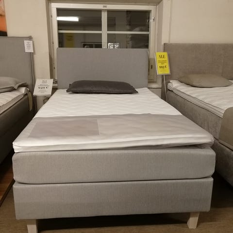Myymälämalli. Sisältää 2kpl runkopatjoja 80x200cm, 160x200x8cm profiloitu sijauspatja ja kuultovalkoiset 23cm korkeat tammijalat.