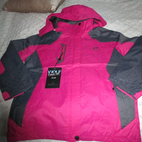 Punainen naisten ulkotakki, koko 38. Takissa on pitkä malli ja hupussa tekoturkisreunus. Sopii ulkokäyttöön viileämmillä ilmoilla.