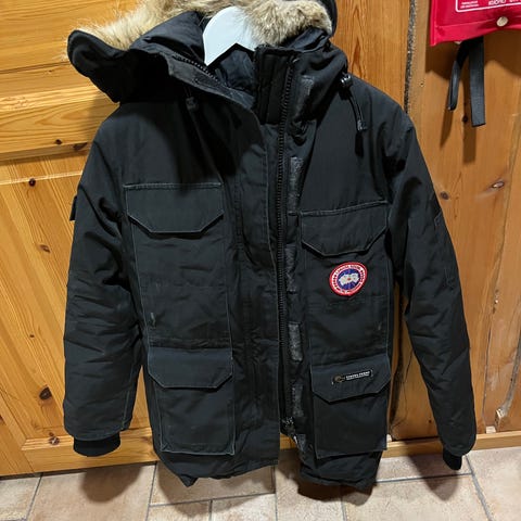 Vanha mutta edelleen täysin käyttökunnossa oleva lämmin Canada Goose Expedition -takki. Likainen ja kulumaa etenkin hihojen saumoissa. Vetoketjut kunnossa. Koko on mielestäni aika pieni, vastaa ennemmin S-kokoa.
