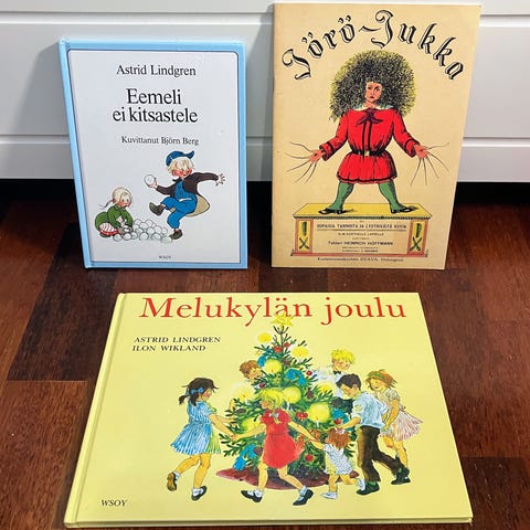 Kirjasarjan suomalainen toimittaja Aili Palmén, tekijätietoja kuvissa. Satukirjat vuosilta 1964-1966. Kirjat olleet kirjahyllyssä, joten haalistumaa kantissa.