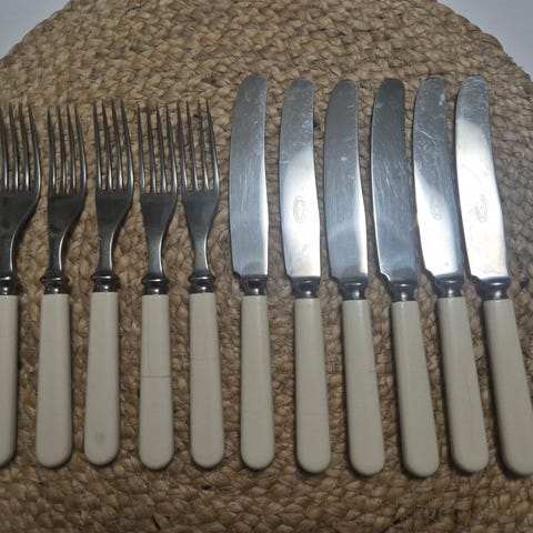 Myydään Hackman-Sorsakoski luupäiset aterimet kutakin 4 kpl. Käteismaksu rahana.