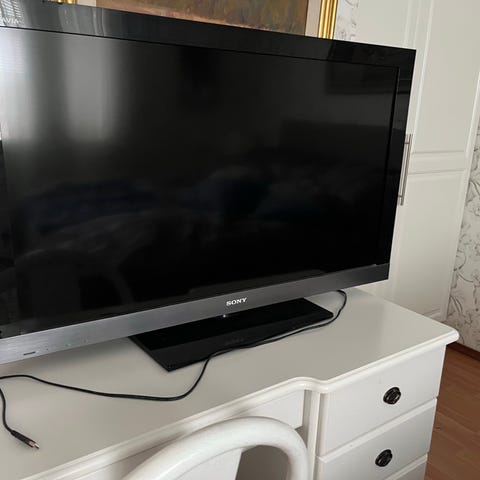 Sony Bravia LCD-televisio hopeanharmaalla rungolla. Sopii yleiseen kotikäyttöön televisiolähetysten katseluun. Laite sisältää kaukosäätimen ja tukee useita liitäntämahdollisuuksia.Tarvitsee digiboksin