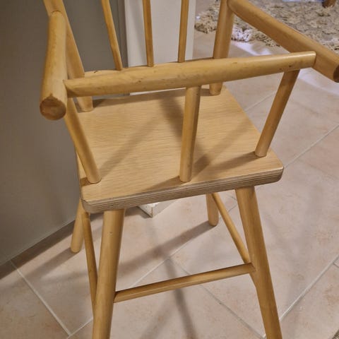 IKEA Syöttötuoli on valmistettu valkoisesta muovista ja metallijaloista. Sisältää irrotettavan tarjottimen. Mukana tulee puhallettava pehmuste irrotettavalla kankaalla ja vyöt