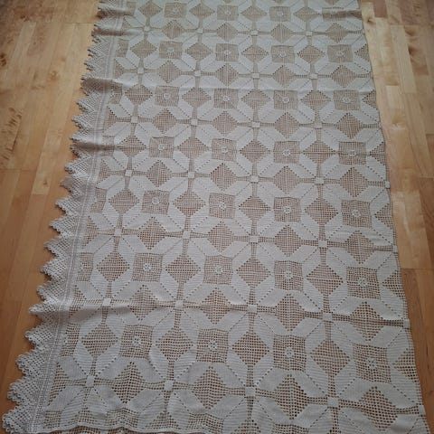 Kalastajalangasta virkattu luonnonvalkoinen peitto