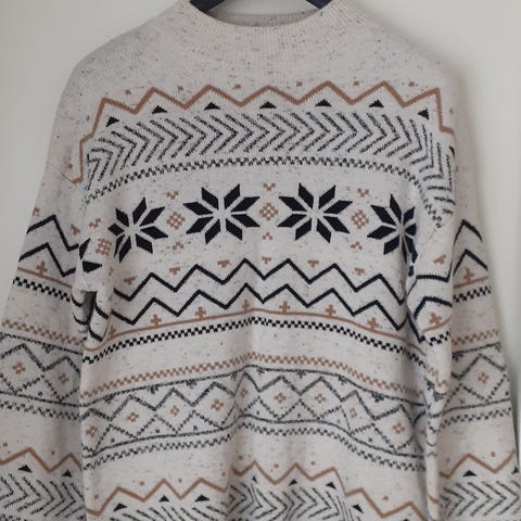 Lämmin neulepusero, koko M, pituus 67 cm, luonnonvillaa