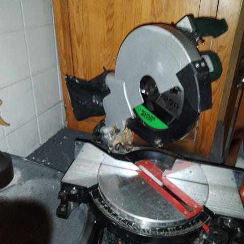 Myydään jalustalla oleva jiiri/katkaisusaha. Terän suojamuovista pieni pala pois.