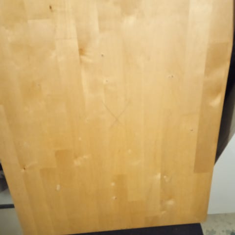 Myydään saarekkeessa ollut pöytätaso. Toisessa reunassa kuvassa näkyvä kolo. Pinnassa muutama pieni jälki. Yhdestä kohdasta kuva.