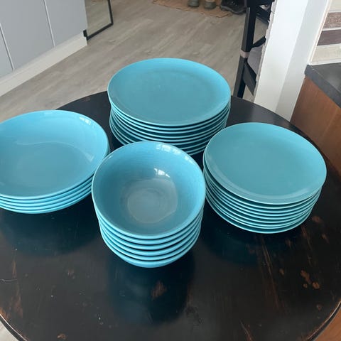 IKEA astiastosetti, 8 isoa ja 8 pientä lautasta. Yksi lautanen ala reunassa kolhu, näkyy kuvassa. Nouto Lystimäki