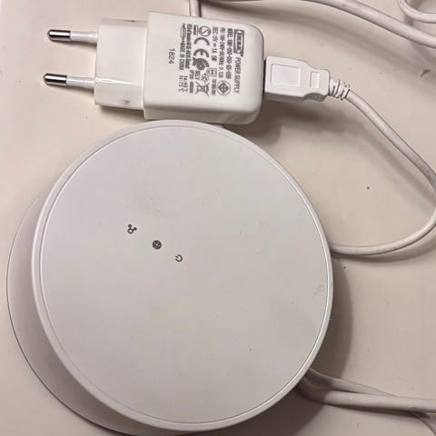 Ikea Trådfri Gateway hub, malli E1526. Laite toimii kodin älylaitteiden ohjaamiseen ja yhdistämiseen langattomasti. Mukana virtalähde ja kaapeli. Väri valkoinen. Ollut vähäisellä käytöllä.