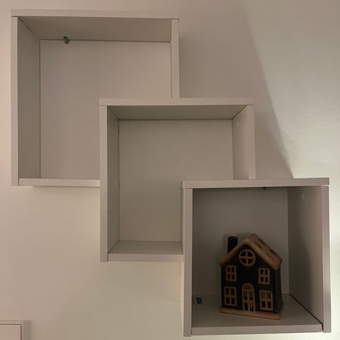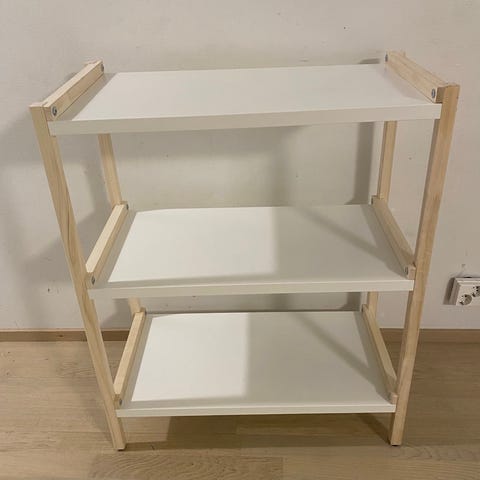 Valkoinen avohyllykkö myyntiin.