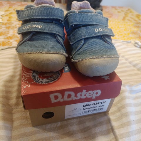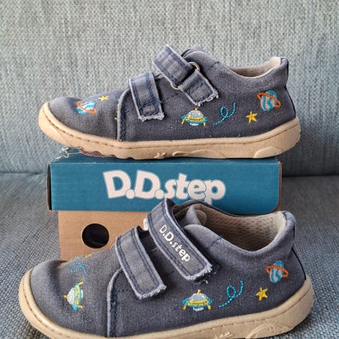 D.D.Step paljasjalkamalliston lasten kengät, koko 25, sisämitta n. 15,3cm. Tumman siniharmaat nahkakengät välikauteen ja kesään. Varustettu tarrakiinnityksellä, helppo pukea ja riisua. Joustava tasainen kumipohja, jalan muotoinen lesti. Sopii myös pulleampaan taaperojalkaan. Irtopohjallinen.