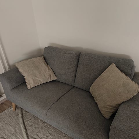 Sohva on säännöllisesti höyrypesty. Ollut koirataloudessa.