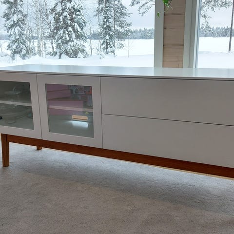 TV-taso musta. Viilu ja teräs ja mitat L144 x K41 x S44 cm