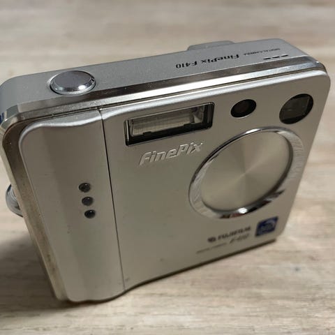 Fujin digipokkari. Taitaa olla yksi hienoimmista. Akkua tai muistikorttia en omista, mutta verkkovirralla sain kameran normaalisti käyntiin, ja se päästeli ihan oikeita ääniäkin. Tarvittavat varusteet saa vaikka eBaysta, mikäli et halua tätä vain hyllyä koristamaan.