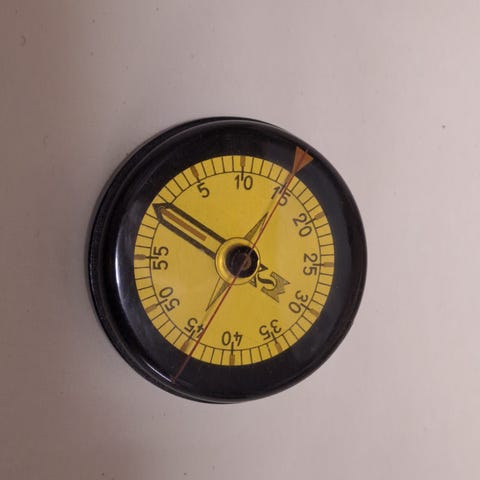 Kompassi messinki, läpinäkyvä lasi, antiikki 1800-luvun puoliväli, säilytyspussi