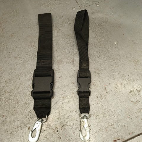 Musta turvavyö, jossa muovinen solki ja metallinen kiinnitysklipsi. Soveltuu esimerkiksi auton turvavarusteeksi tai muuhun kiinnitystarpeeseen.