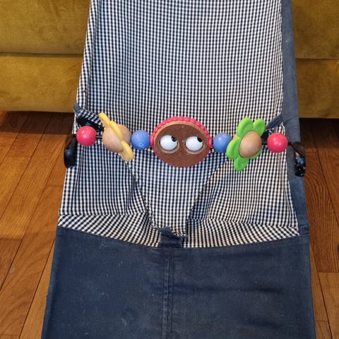 Paljon käytetty ja vanha, mutta toimiva vauvan sitteri. Lelukaari tulee mukaan.