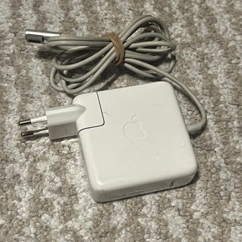 Toimiva Apple 60W MagSafe Power Adapter sovitin, valkoinen. Soveltuu MacBook-tietokoneiden lataukseen. Mallimerkintä kuvassa. Postitus onnistuu tori-diilillä.