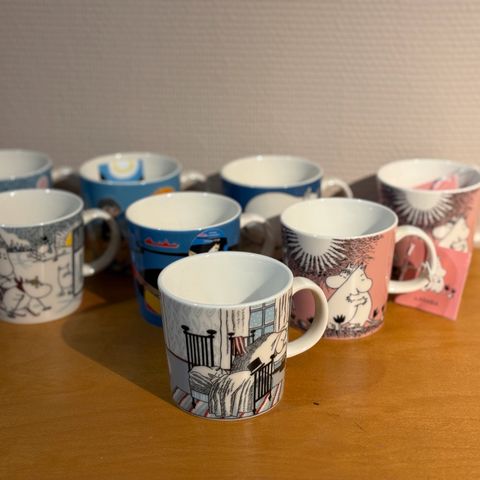 New Moomin mugs from the winter season 2010-2014 that have been discontinued. Skiing competition, snow games, winter forest, under the fir tree and skiing with Mr. Virkkunen. 2013 mug is of 2nd quality, I don't know the reason, I don't see a flaw in it.