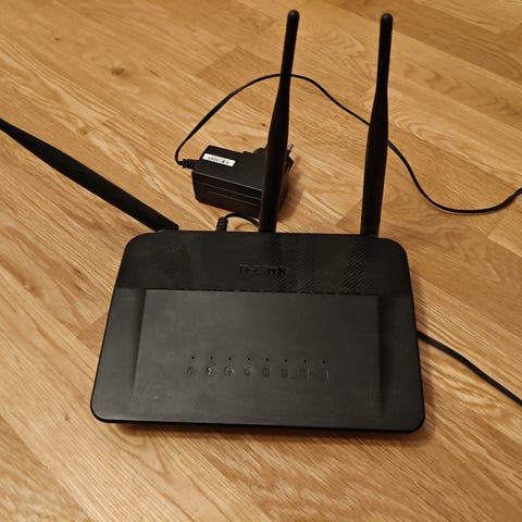 A-LINK WLAP45 reititin, jossa useita LAN-portteja ja ulkoinen antenni.