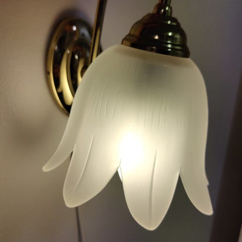Vintage valaisimessa on kauniit kukkakuviot ja koristeelliset metalliosat, jotka tuovat esiin vanhan ajan charmia. Tämän tyyppisiä valaisimia on ollut myynnissä ainakin 80-luvulla.