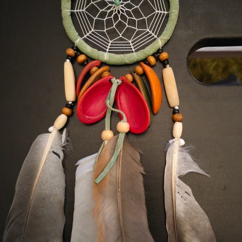 Melko siisti unisieppari. Muutama höyhen irronnut. Vain nouto