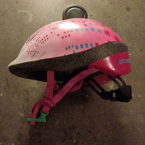 Lasten kypärä, jossa on vaaleanpunainen väri ja kissateema. Kypärässä on säädettävä leuka- ja niskahihna turvallisuuden varmistamiseksi. Soveltuu lasten käyttöön pyöräilyyn ja muihin ulkoilma-aktiviteetteihin.